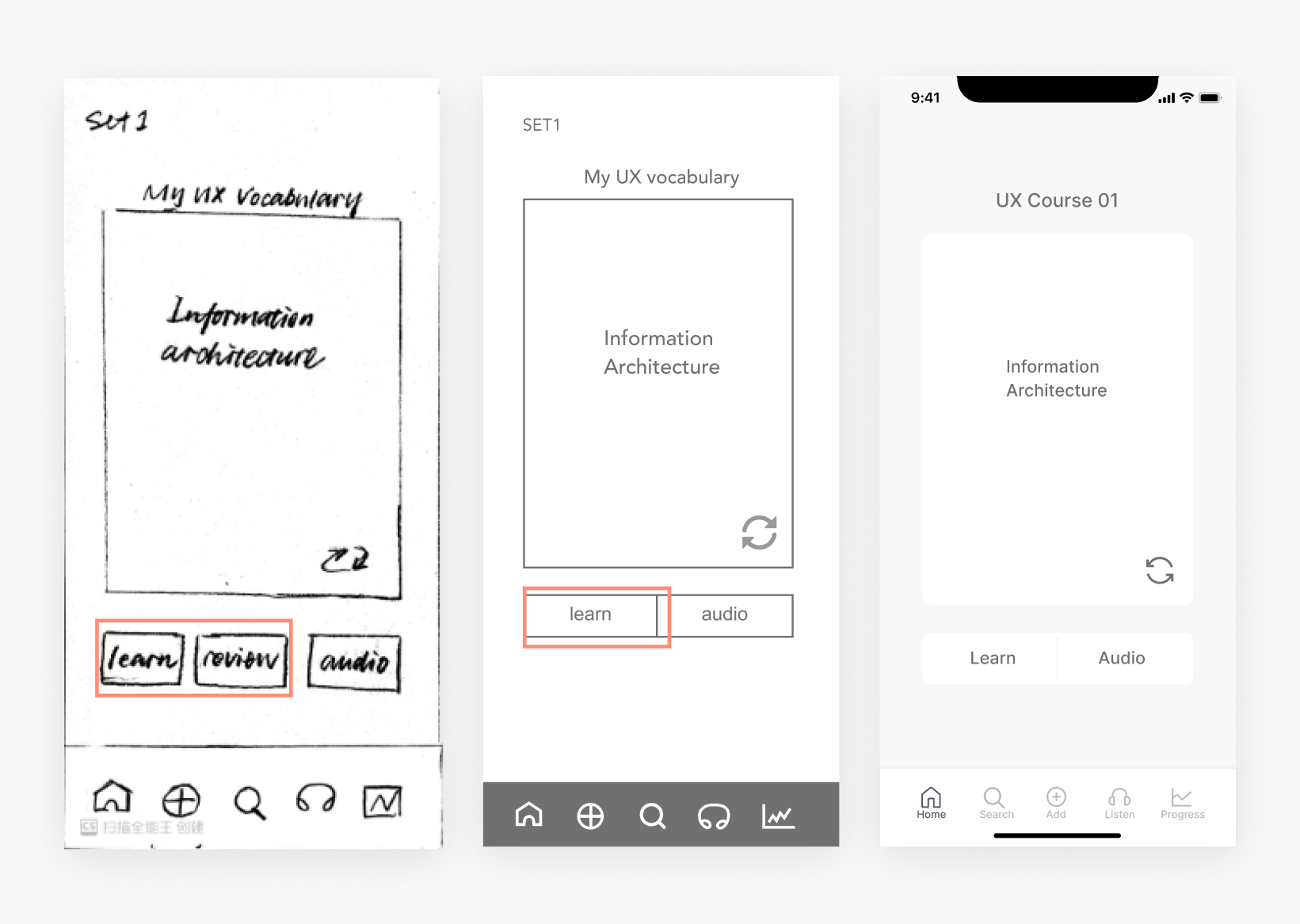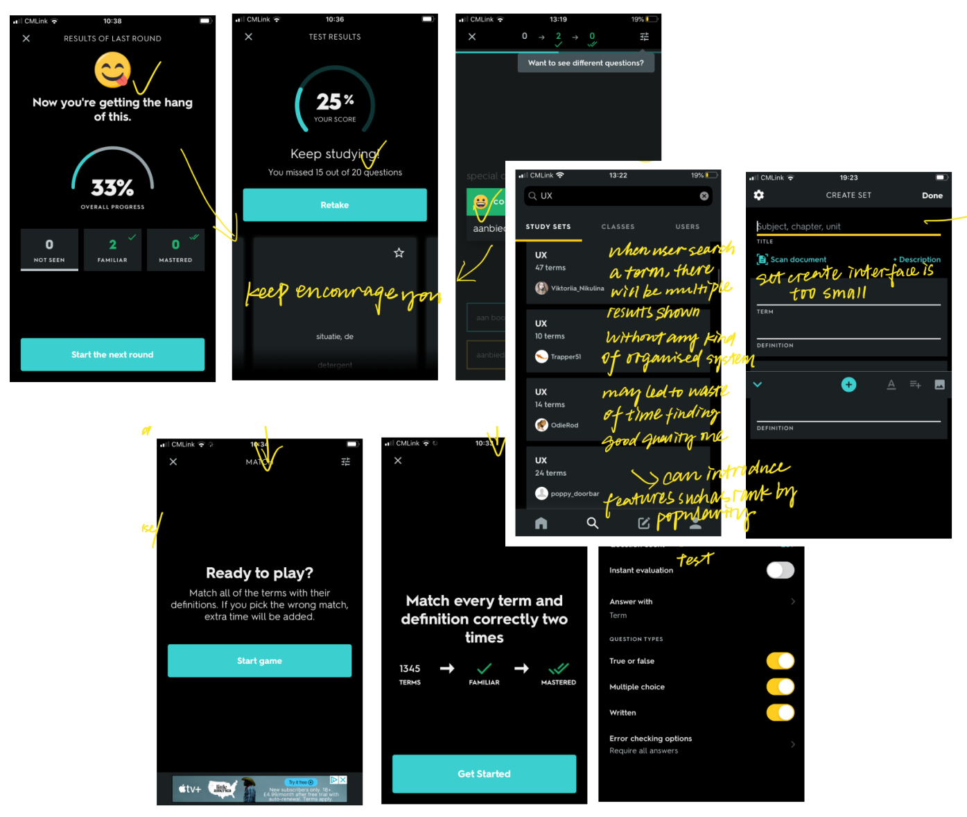 I designed ‘’learn and review’’ based on language learning apps, which normally have a pre-existing vocabulary library. That means users can either learn new words or review the old. However, for a flashcard app that do not have a pre-existing library, learn and review mean the same thing. This mistake was spot by one of the participant who was confused about learn and review.